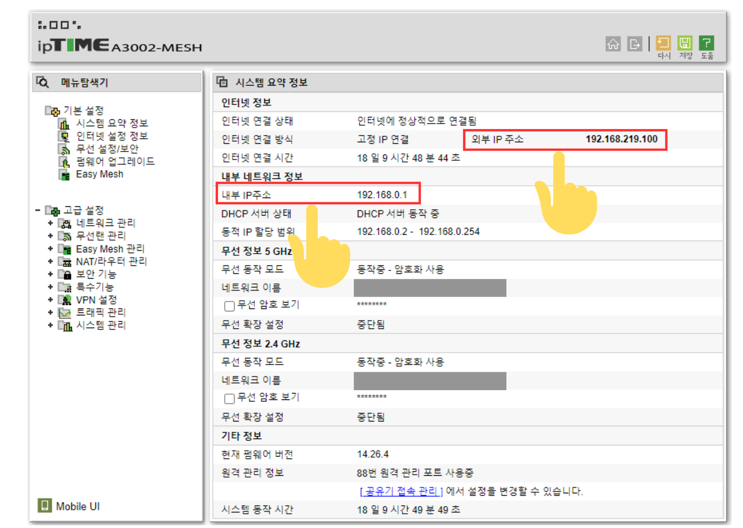 iptime 공유기의 내부 IP, 외부 IP 주소 확인하기