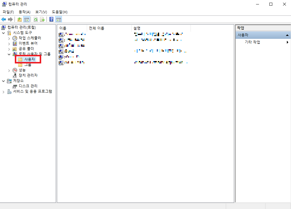 2. 시스템 도구 > 로컬 사용자 및 그룹 > 사용자