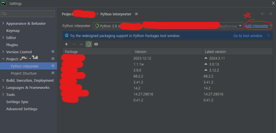 2. Python interpreter > Add interpreter > Add Local interpreter